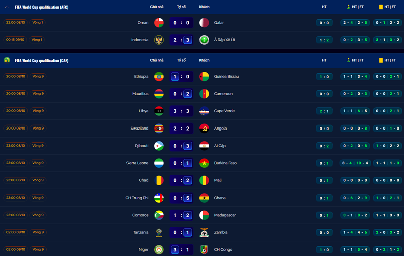 Không chỉ vậy, kết quả bóng đá tại đây còn được trình bày cực kỳ rõ ràng, dễ đọc, dễ hiểu: